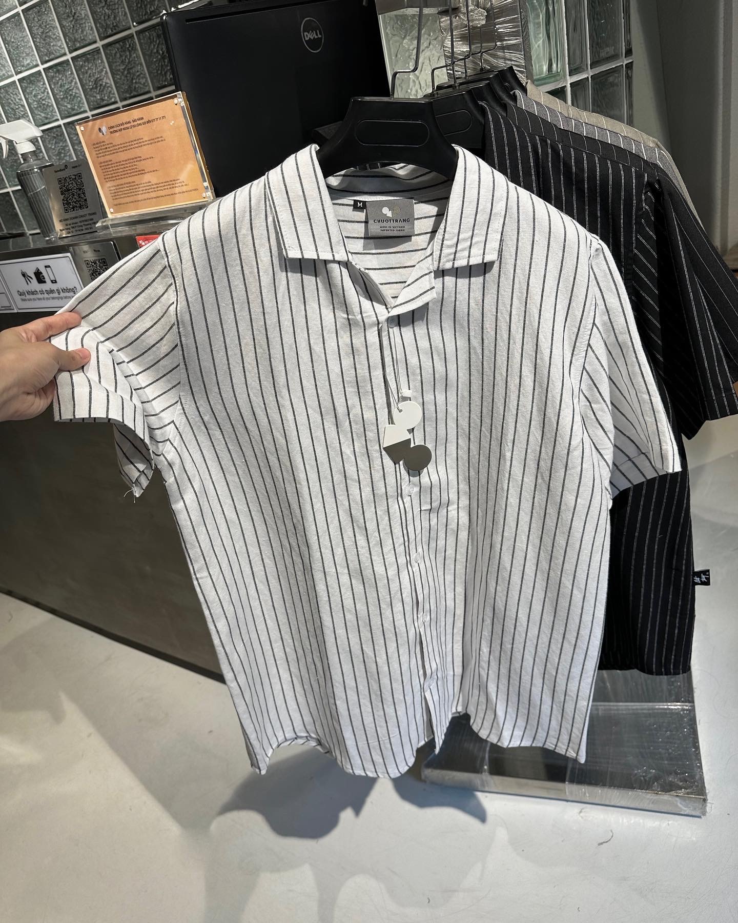 . Trắng sọc : vải Linen mềm nhẹ và nhăn
