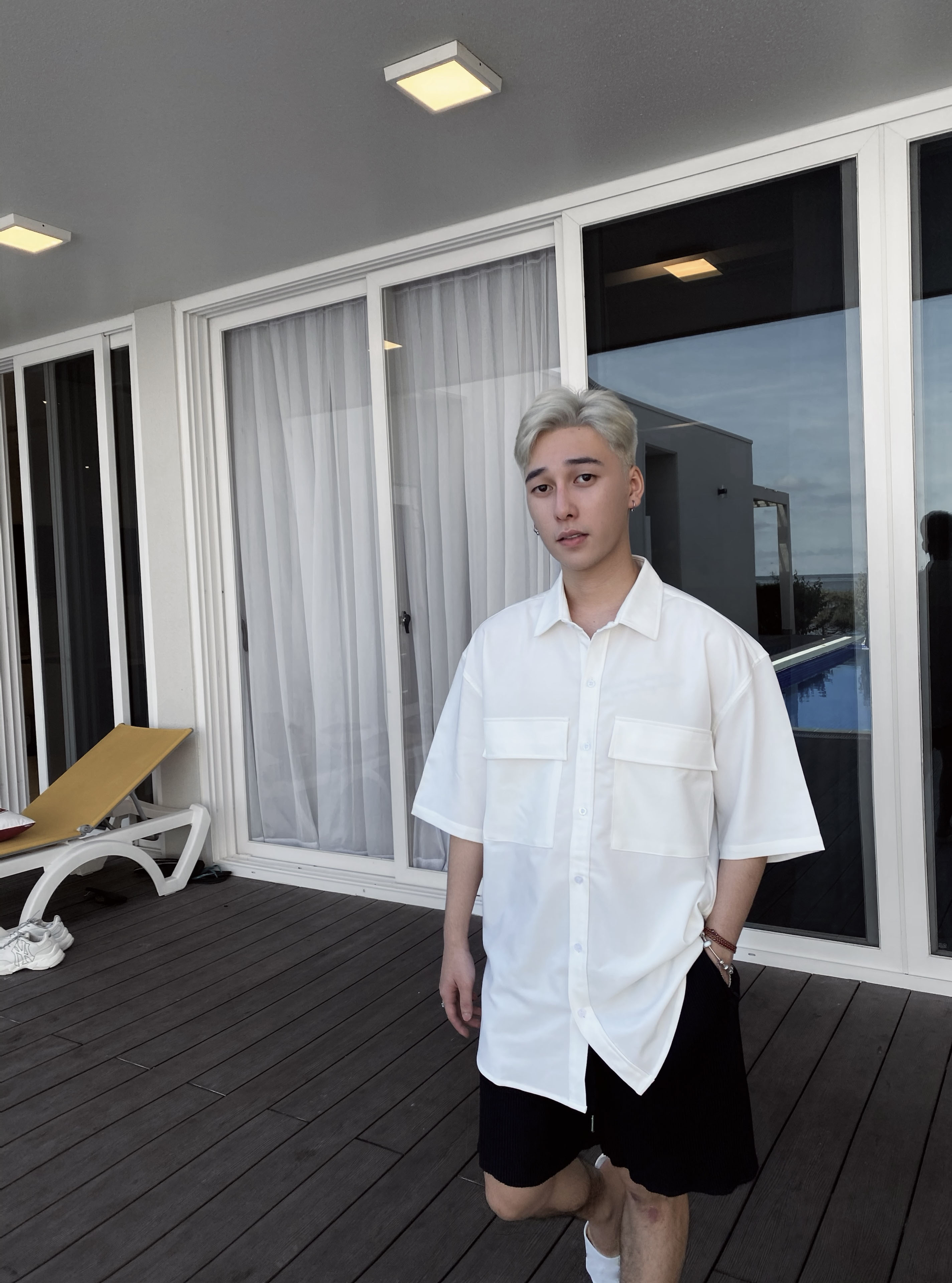 Sơ mi túi hộp, sơ mi Chuột Trắng, hãy chọn size lớn mặc thoải mái ạ.