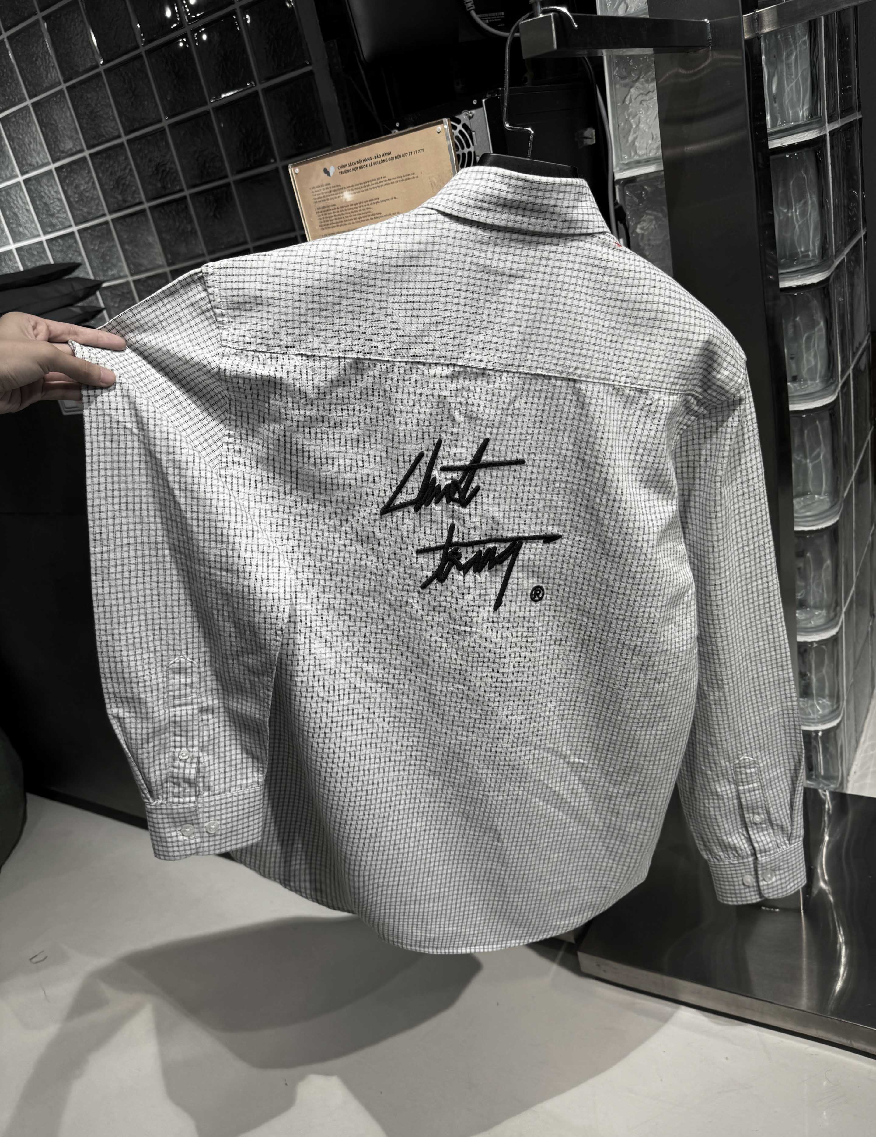 SƠ MI CHUỘT TRẮNG chi tiết hình thêu nhỏ phía sau, phía trước trơn.