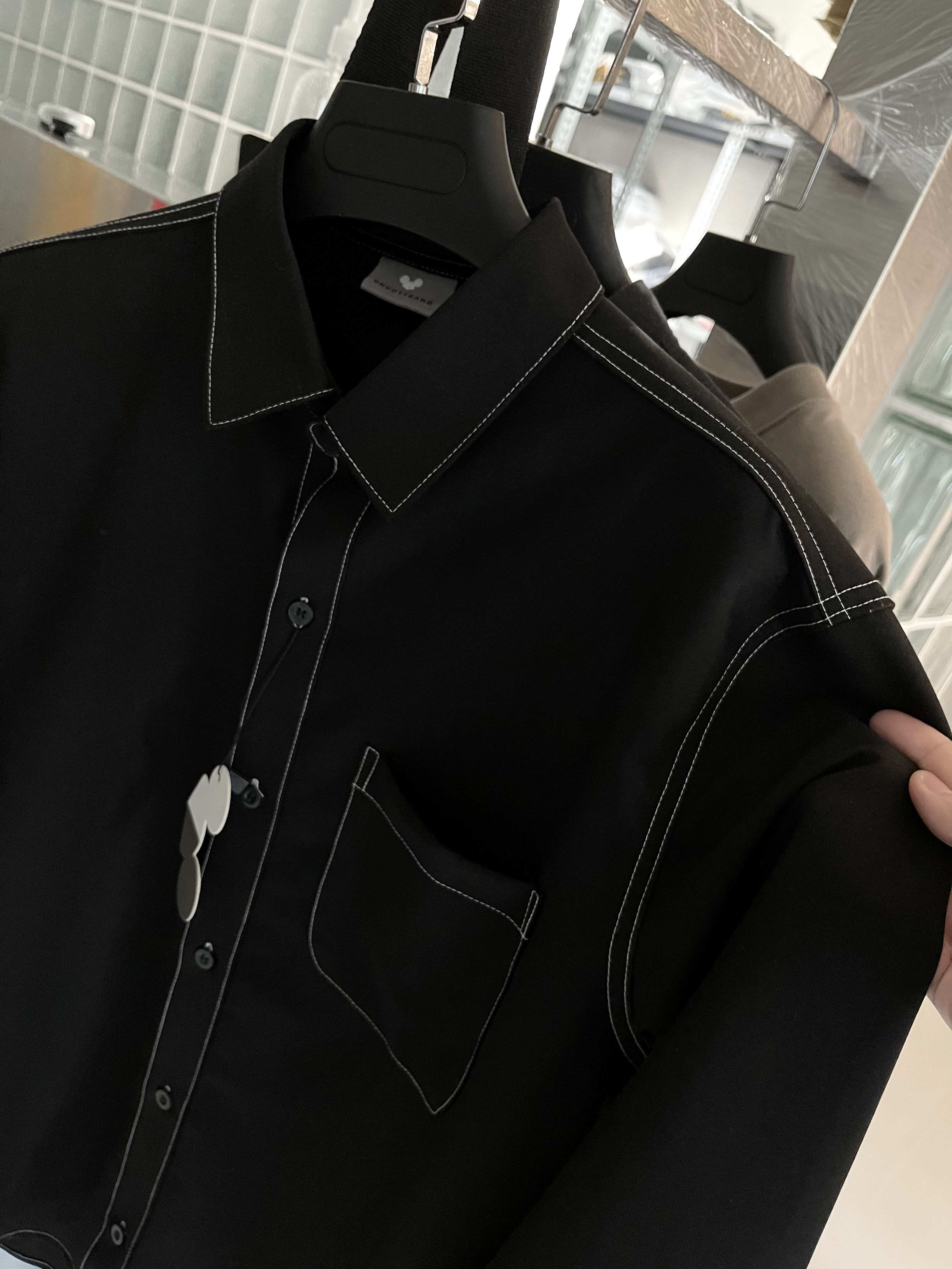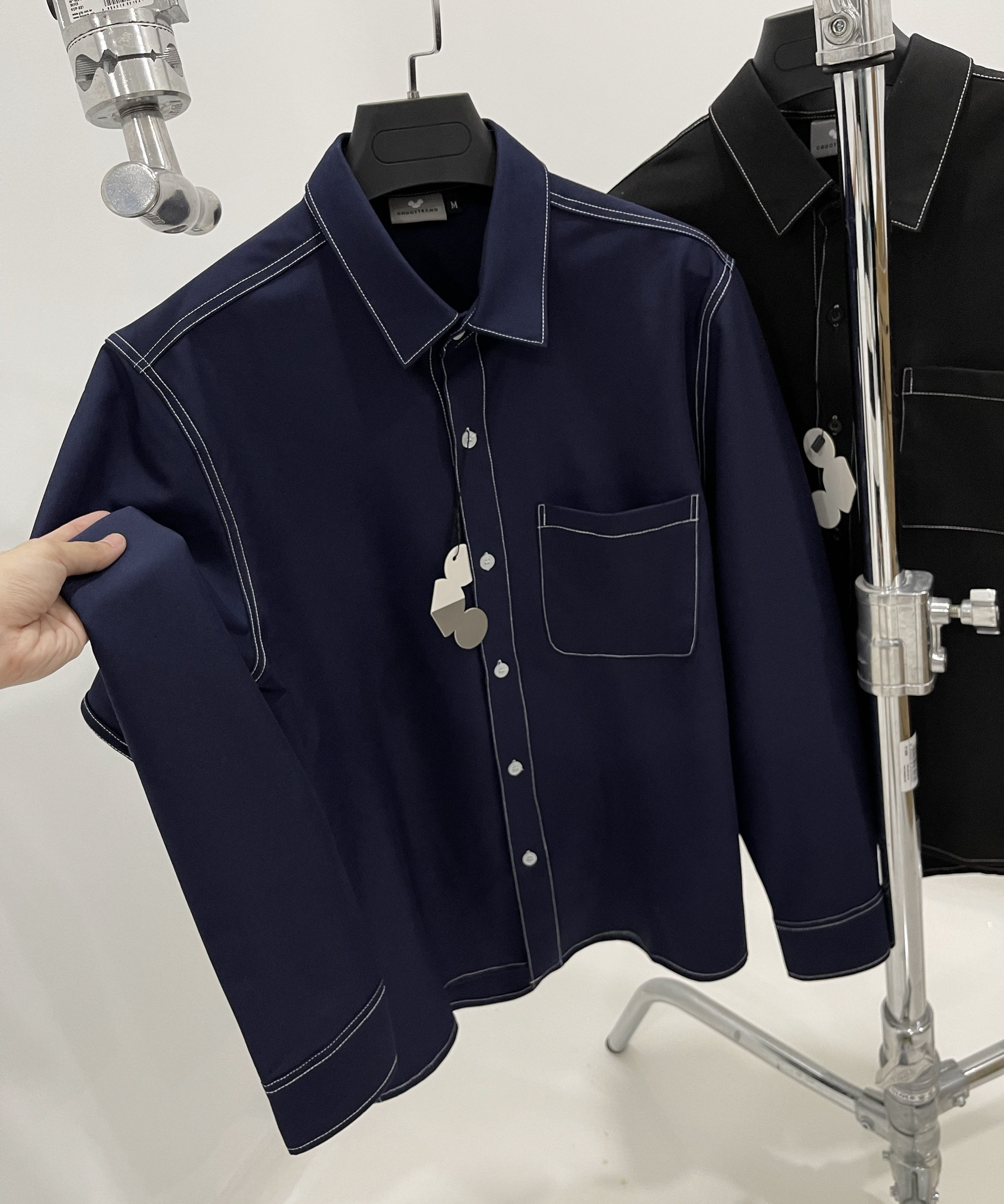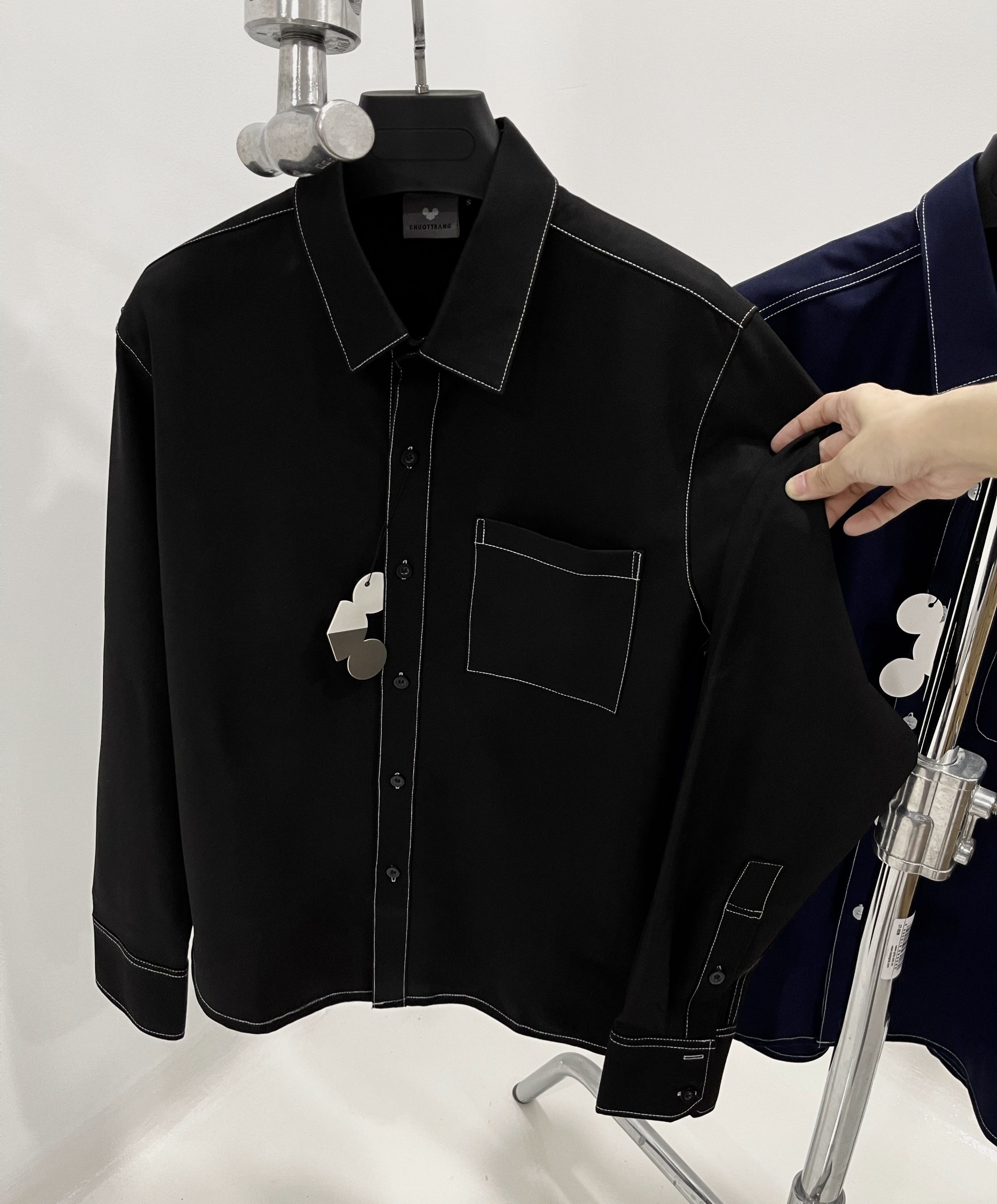 Áo sơ mi chạy viền chỉ trắng, sơ mi viền chỉ nổi CHUỘT TRẮNG phom suông, nếu mặc body xin quý khách chọn size bé, nếu mặc rộng xin quý khách chọn size lớn hơn.